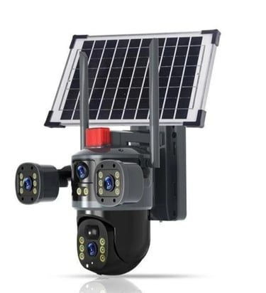 MODEL NAME - 3 view solar double camera; FHD IR 2MP Camera+ 2mp; 4G Enabled; Solar Panel 5V 7W; 3.7V 10000mAh Lithium-ion Battery; 2-3 Days Backup; Night Vision; Human Detection; Recording Upto 128GB SD Card Supported; APP V380 Pro; Remote Monitoring with Audio Video Recording; 2 Way Intercom; 360 Degree Rotation View; IP66 Rating 1 year warranty