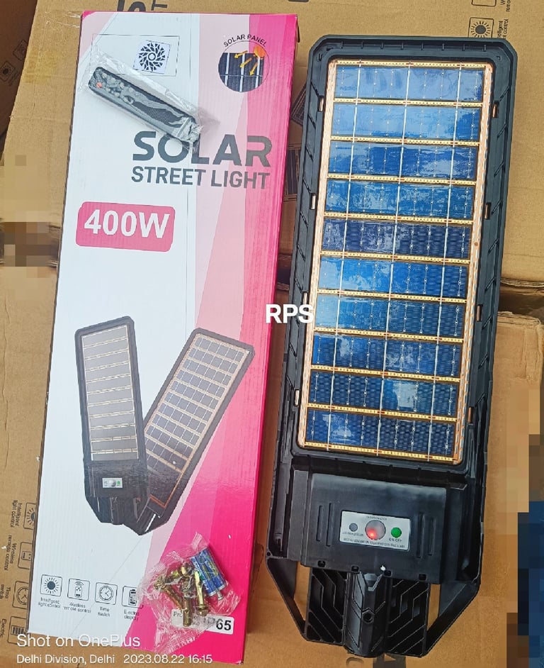 Model name -- BIF-400; LED make -- epistar; number of LED -- 418; Led power -400W; LED WATTAGE (BRIGHTNESS) - 20 w; solar panel 5v mono; battery-- 3.7 volt 9600mah; lithium ion; charging time - 7 to 8 hours; lightning time - 8 hrs; sensor -induction motion; Size - 660X222X52 mm ( +-5 mm); Pole dia -40 mm ( +-5mm); Weight - 1600 gm ( +-mm); Material pc -PC; IP 65; Solar cell - 5v ( 20 cell ); Led - 3835 0.5w luminous flux - 2550 (+-10%) Color temperature - 8000 (+-510k) Led beam angle -120°( +-5); Working temperature range ( -10to +45); Working humidity range - 0-95%; WITH REMOTE AND FEATURES ACCORDINGLY; 2 year warranty