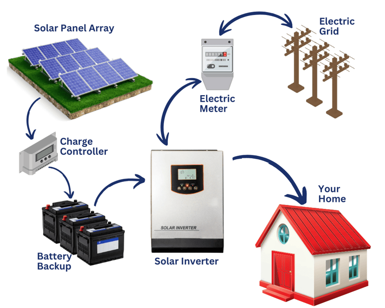 Hybrid solar systems combine ongrid and offgrid features, offering flexibility and backup power during outages.